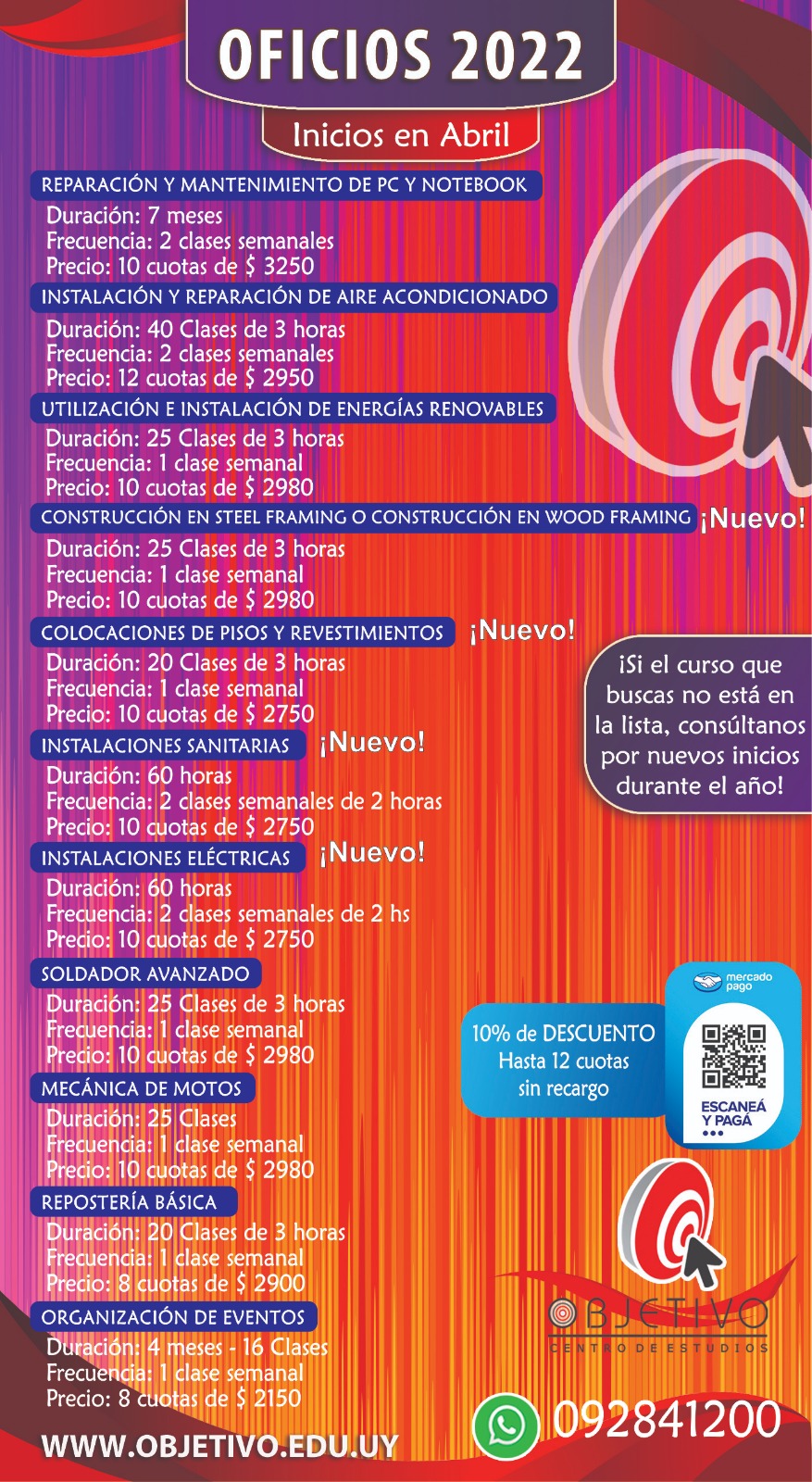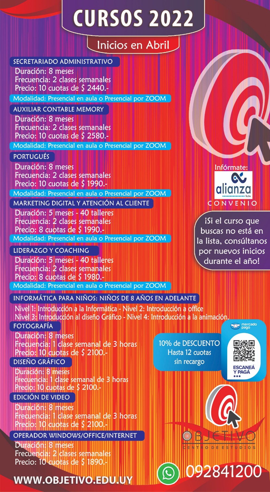 Mantenemos el convenio, socio y familiares directos descuento en los cursos. Para asesorarte directamente con el instituto Rodó 147 o a los teléfonos 4472 1200 o 092841200